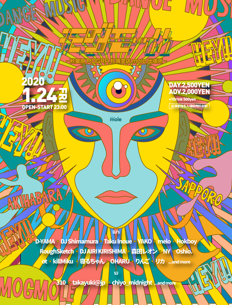 別途1ドリンク500円購入制DJ:D-YAMA / DJ Shimamura / TAKU INOUE / YAKO / melo / Hokboy / RoughSketch / DJ AIRI KIRISHIMA / 森田レオン / NY / Oshio. / ot / killMiku / 寝るちゃん / OHARU / りんご / リカ
