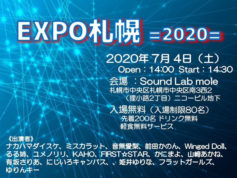 入場無料(要予約、入場制限80名)出演:ナカハマダイスケ(沖縄)/ ミスカラット / 音無愛梨 / 前田かのん / Winged Doll / るる姉 / ユメノリリ / KAHO / FIRST⭐︎STAR / かにまよ / 山崎あかね / 有坂さりあ / にじいろキャンバス / 姫井ゆりな / フラットガールズ / ゆりんキー